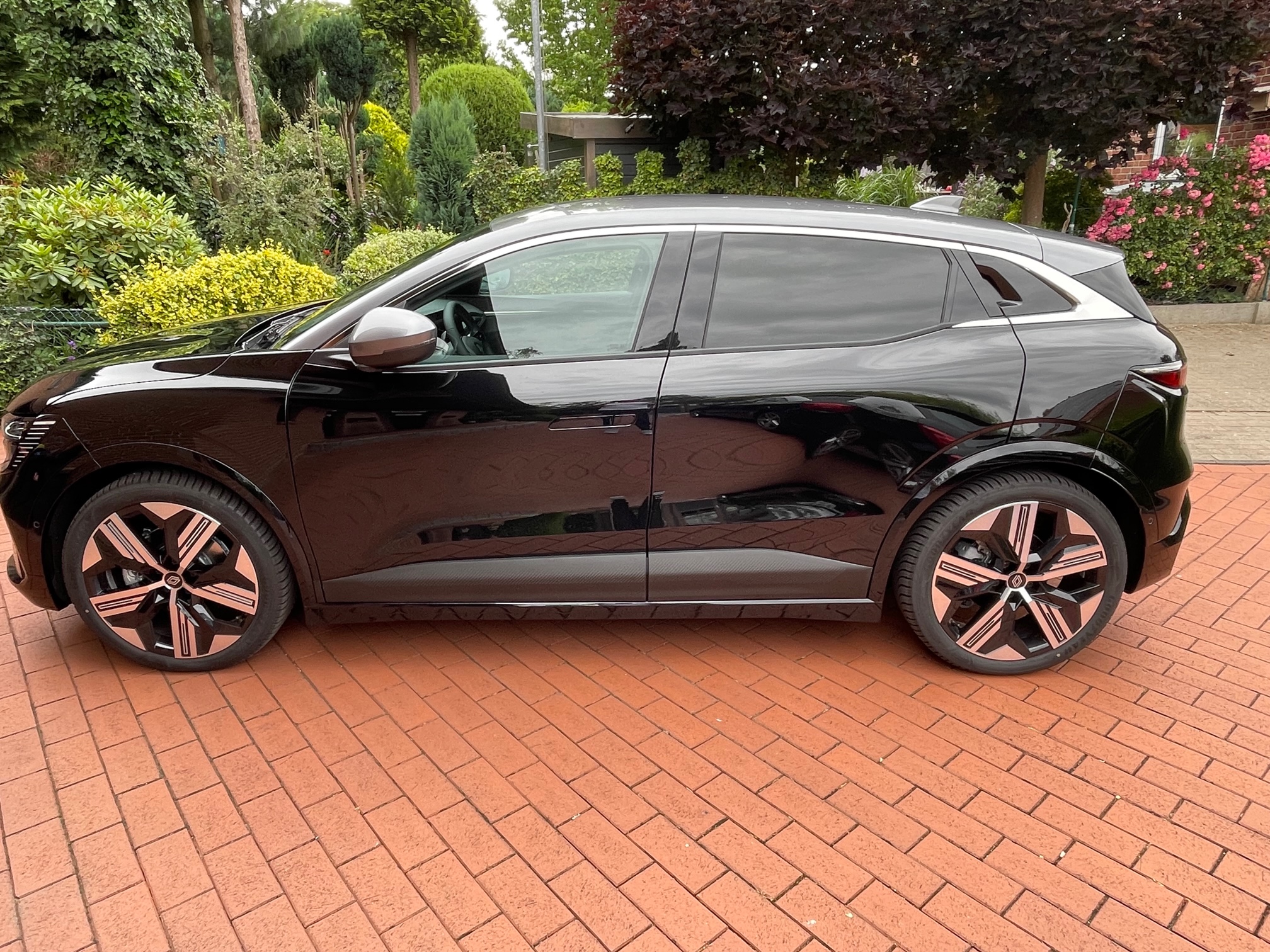 Hier seht ihr ein paar Fotos von meinem Megane e-tech Iconic. Der Fahrersitz ist auf 184cm eingestellt, der Beifahrersitz auf 168cm. So kann man sich die Beinfreiheit hinten gut vorstellen. Wie auf dem Fotos zu erkennen, habe ich den doppelten Ladeboden von Renault drin. Dadurch verringert sich die Ladekante von vorher 28,5 cm auf ca 14cm.